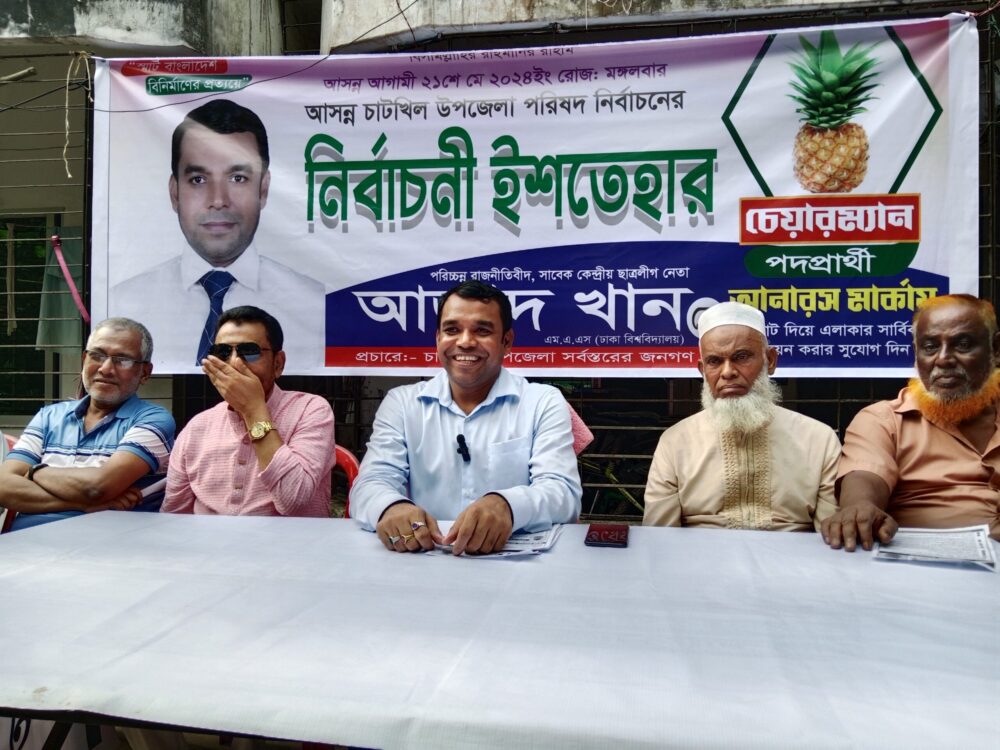 শনিবার (১১ মে) বিকেলে জেড. এম আজাদ খান চাটখিল পৌর শহরের ভীমপুুরে তার নিজ বাড়িতে দলীয় নেতাকর্মী ও স্থানীয় গণ্যমান্য ব্যক্তিবর্গের সাথে মতবিনিময় করেন। মতবিনিময় শেষে তিনি ১৪ দফা নির্বাচনী ইশতেহার ঘোষণা করেন।