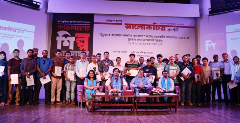 পরে বিজয়ী আলোকচিত্র শিল্পীদের হাতে পুরষ্কার তুলে দেন তিনি।