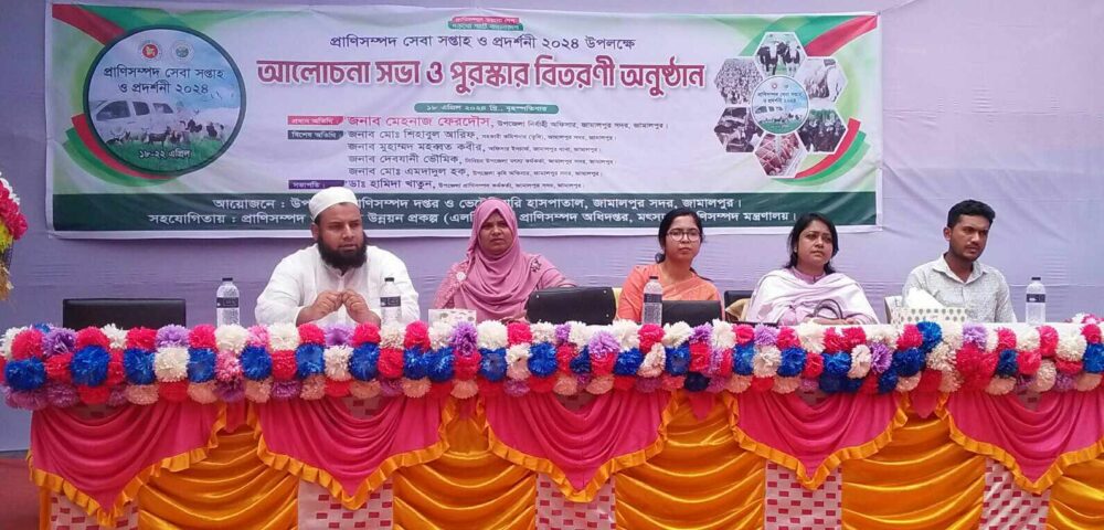 হাসান আহাম্মেদ সুজন, সিনিয়র স্টাফ করেসপনডেন্ট, জামালপুর : জামালপুর সদর উপজেলা প্রাণিসম্পদ দপ্তর ভেটেরিনারি হাসপাতালের আয়োজনে প্রাণিসম্পদ ও ডেইরী উন্নয়ন প্রকল্প (এলডিডিপি) প্রাণিসম্পদ অধিদপ্তর, মৎস্য- প্রাণিসম্পদ মন্ত্রণালয়ের সহযোগিতায় প্রাণিসম্পদ সেবা সপ্তাহ ও প্রদর্শনী ২০২৪ইং উপলক্ষ্যে আলোচনা সভা ও পুরস্কার বিতরণী অনুষ্ঠান অনুষ্ঠিত হয়।