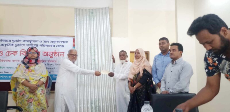 বাসুদেব রায়, ডিমলা, নীলফামারী : নীলফামারীর ডিমলায় ২০২৩-২০২৪ অর্থ বছরের দূর্যোগ ব্যবস্থাপনা ও ত্রাণ মন্ত্রণালয়ের আওতায় বিভিন্ন প্রাকৃতিক ক্ষতিগ্রস্ত পরিবারের মাঝে ঢেউটিন ও চেক বিতরণ করা হয়।