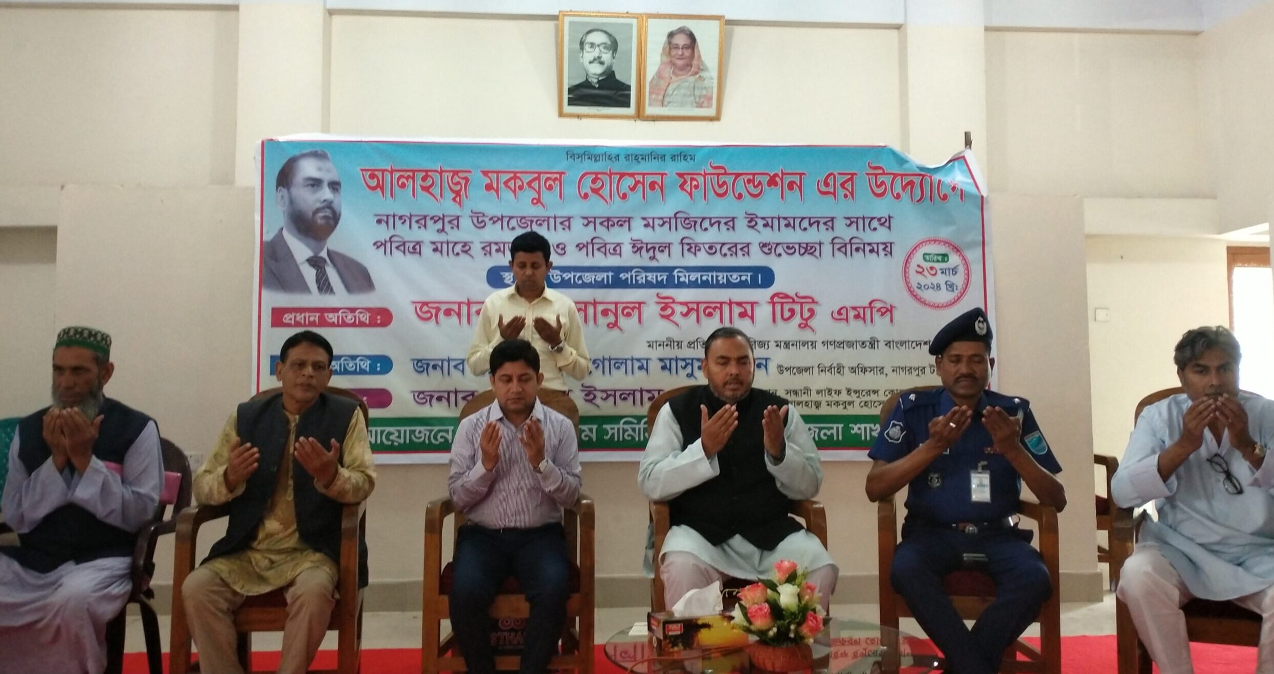 আজ ২৩ মার্চ (শনিবার) আলহাজ্ব মকবুল হোসেন ফাউন্ডেশনের উদ্যোগে নাগরপুর ইমাম সমিতির আয়োজনে উপজেলা পরিষদ মিলনায়তনে এ শুভেচ্ছা বিনিময় ও দোয়া মাহফিল অনুষ্ঠিত হয়।