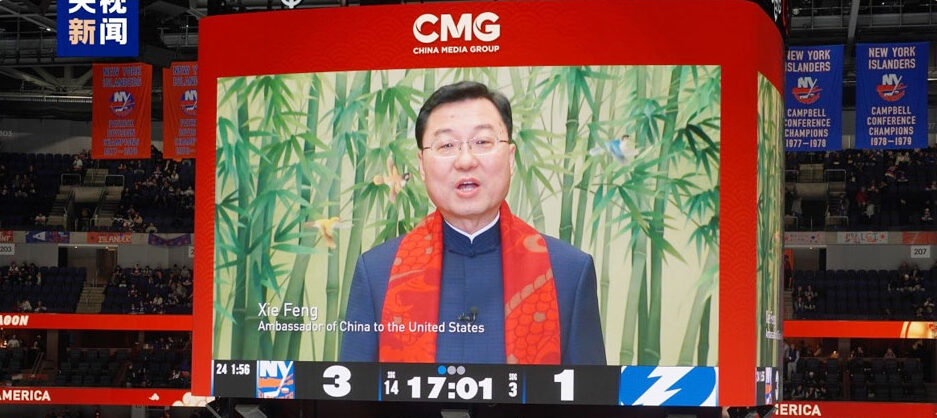 আন্তর্জাতিক ডেস্ক রিপোর্ট : ৯ ফেব্রুয়ারি যুক্তরাষ্ট্রের নিউইয়র্কে, উত্তর আমেরিকান পেশাদার হকি প্রতিযোগিতার সময়, সিএমজি’র বসন্ত উৎসব গালার ওপর একটি ভিডিও প্রদর্শন করা হয়।