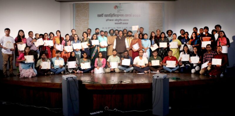 চারকলা বিভাগের ব্যবস্থাপনায় গত ২৫ ও ২৬ জুন বিকেল ৫.৩০টা – রাত ৮.৩০টা পর্যন্ত জাতীয় চিত্রশালা মিলনায়তনে আর্ট অ্যাপ্রিসিয়েশন কোর্স ২০২৪ অনুষ্ঠিত হয়। ২ দিনব্যাপী এই কোর্সে প্রশিক্ষণ প্রদান করেন শিল্পী সাব্যসাচী হাজরা এবং আক্তারুজ্জামান রানা। কোর্সটিতে ৬০ জন প্রশিক্ষণার্থী অংশগ্রহণ করেন। কর্মশালার উদ্বোধনী দিনে উপস্থিত ছিলেন বাংলাদেশ শিল্পকলা একাডেমির সচিব সালাহউদ্দিন আহাম্মদ, চারুকলা বিভাগের পরিচালক মিনি করিম। সমাপনী দিনে কোর্সে অংশগ্রহণকারীদের মধ্যে সনদপত্র প্রদান করেন বাংলাদেশ শিল্পকলা একাডেমির মহাপরিচালক লিয়াকত আলী লাকী।