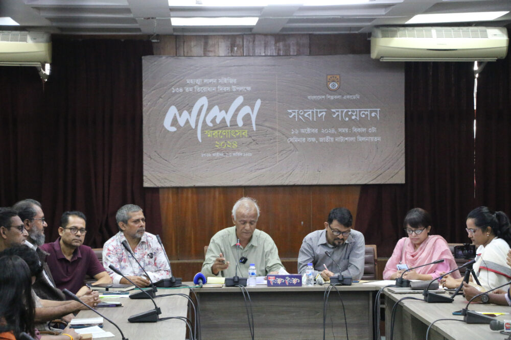 আজ ১৬ অক্টোবর ২০২৪ বিকেলে জাতীয় নাট্যশালার সেমিনার কক্ষে এ সংবাদ সম্মেলনের আয়োজন করা হয়। এতে উপস্থিত ছিলেন বাংলাদেশ শিল্পকলা একাডেমির মহাপরিচালক অধ্যাপক ড. সৈয়দ জামিল আহমেদ, সচিব সালাহউদ্দিন আহাম্মদ, একাডেমির বিভিন্ন বিভাগের নবনিযুক্ত পরিচালক ও কর্মকর্তাবৃন্দ।
