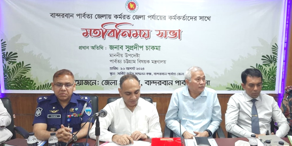 আজ ২৬ আগস্ট (সোমবার) বান্দরবান সার্কিট হাউস-এর সভাকক্ষে বান্দরবান জেলার কর্মকর্তাদের সঙ্গে মতবিনিময় সভায় প্রধান অতিথির বক্তব্যে এমন মন্তব্য করেন পার্বত্য চট্টগ্রাম বিষয়ক উপদেষ্টা সুপদ্রীপ চাকমা।