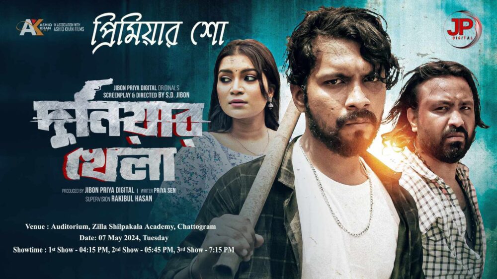 স ম জিয়াউর রহমান, চট্টগ্রাম : জীবন প্রিয়া ডিজিটাল প্রযোজিত ওয়েব ফিল্ম দুনিয়ার খেলা’র প্রিমিয়ার শো আজ জেলা শিল্পকলা একাডেমি চট্টগ্রামের অডিটোরিয়াম হলে অনুষ্ঠিত হবে। প্রিয়া সেন’র কাহিনীতে ওয়েব ফিল্মটি পরিচালনা করেছেন নির্মাতা এস.ডি.জীবন।