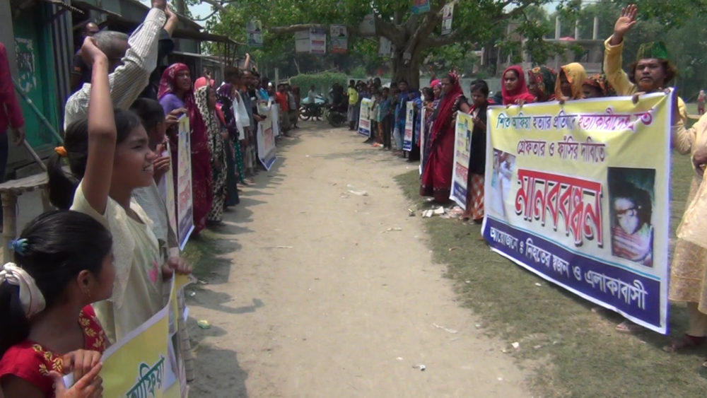 মো. তোফাজ্জ্বল হোসেন তুহিন, সিনিয়র স্টাফ করেসপনডেন্ট, নাগরপুর, টাঙ্গাইল : টাঙ্গাইলের নাগরপুরে শিশু আফিয়ার হত্যাকারীদের দ্রুত গ্রেফতার ও দৃষ্টান্তমুল শাস্তির দাবিতে মানববন্ধন অনুষ্ঠিত হয়। ১৪ এপ্রিল (রবিার) বিকেলে উপজেলার ভাদ্রা ইউনিয়নের সিংদাইর গ্রামে নিহতের পরিবার ও এলাকাবাসী এ মানববন্ধনের আয়োজন করেন। শিশু আফিয়া হত্যার ২ বছর ৩ মাস অতিবাহিত হলেও পুলিশ ও ডিবি এখন পর্যন্ত কাউকে আটক বা গ্রেফতার করেনি এমন অভিযোগ করেন উপস্থিত স্বজনেরা। তাই সুষ্ঠ তদন্তের মাধ্যমে শিশু আফিয়ার হত্যাকারীদের চিহ্নিত করে গ্রেফতারের দাবী জানান এলাকাবাসী। শিশু আফিয়ার হত্যাকারিরা অধরাই থেকে যাবে কি? এমন প্রশ্ন রাখেন মানববন্ধনে উপস্থিত এলাকাবাসী ও স্বজনরা। সেই সাথে প্রশাসনের উর্ধ্বতন কৃর্তিপক্ষসহ মাননীয় প্রধান মন্ত্রীর কাছে ন্যায় বিচারের দাবী জানান নিষ্পাপ নিহত আফিয়ার বাবা মা।